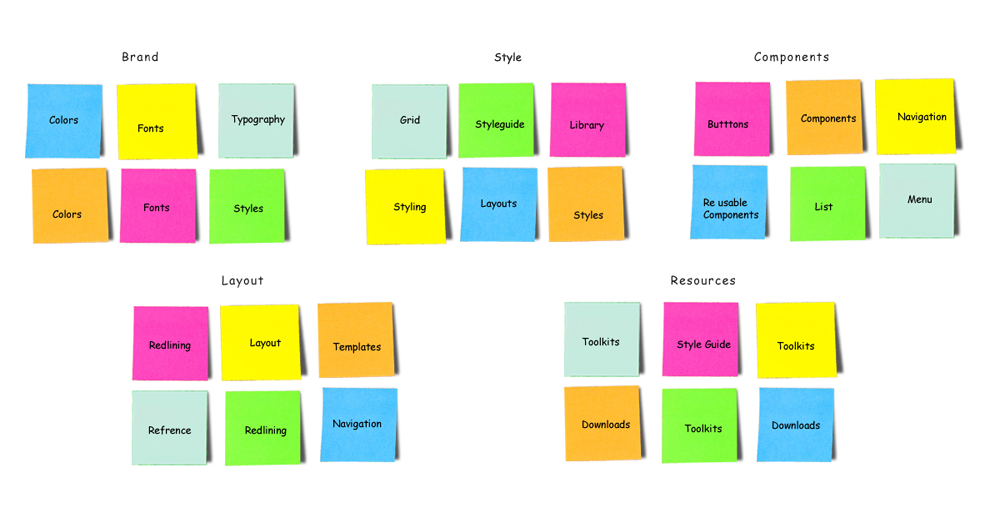 The exercise gave us Brand, style, Components, Layout and Resources were the most prominent requirements.