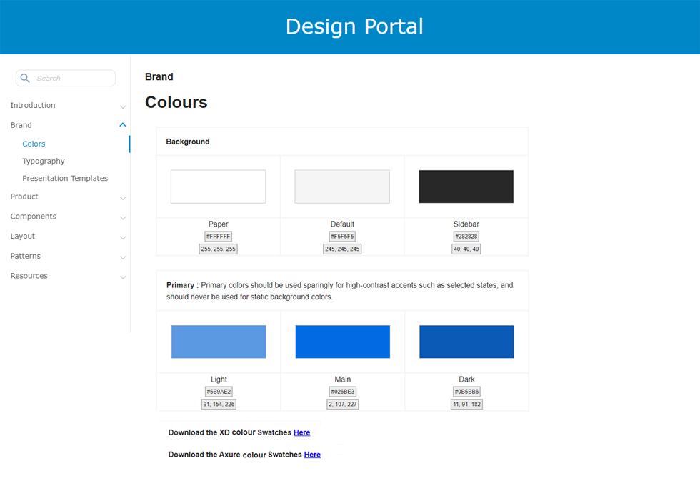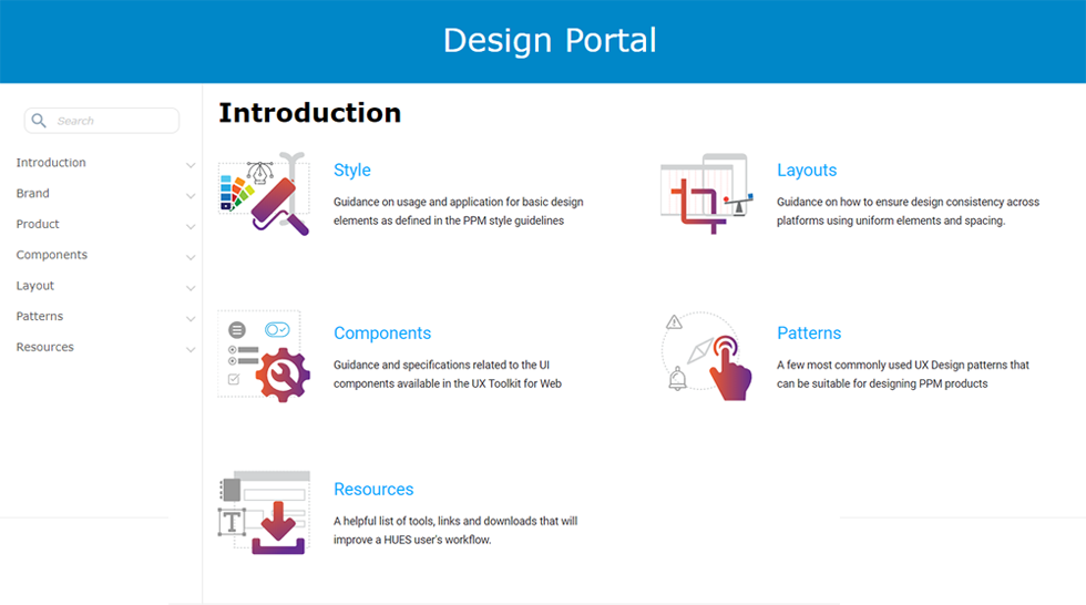 Design Portal is a single shop solution for all the design needs. The purpose of the Design portal was to group the styling and components information off all the products to get to the common look across the products. As a result, Designers & Developers spend less time searching for product information and focus on their development, making them more productive.